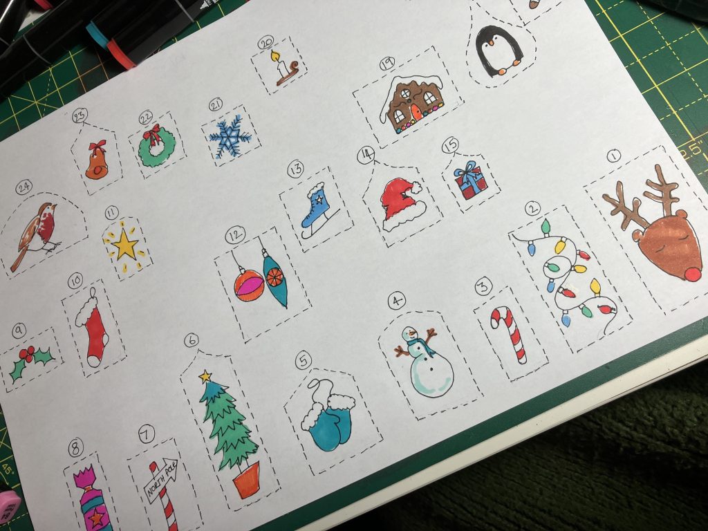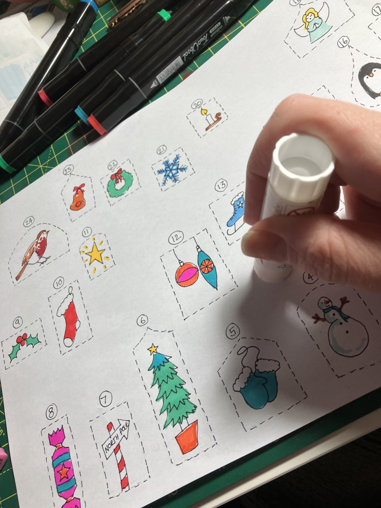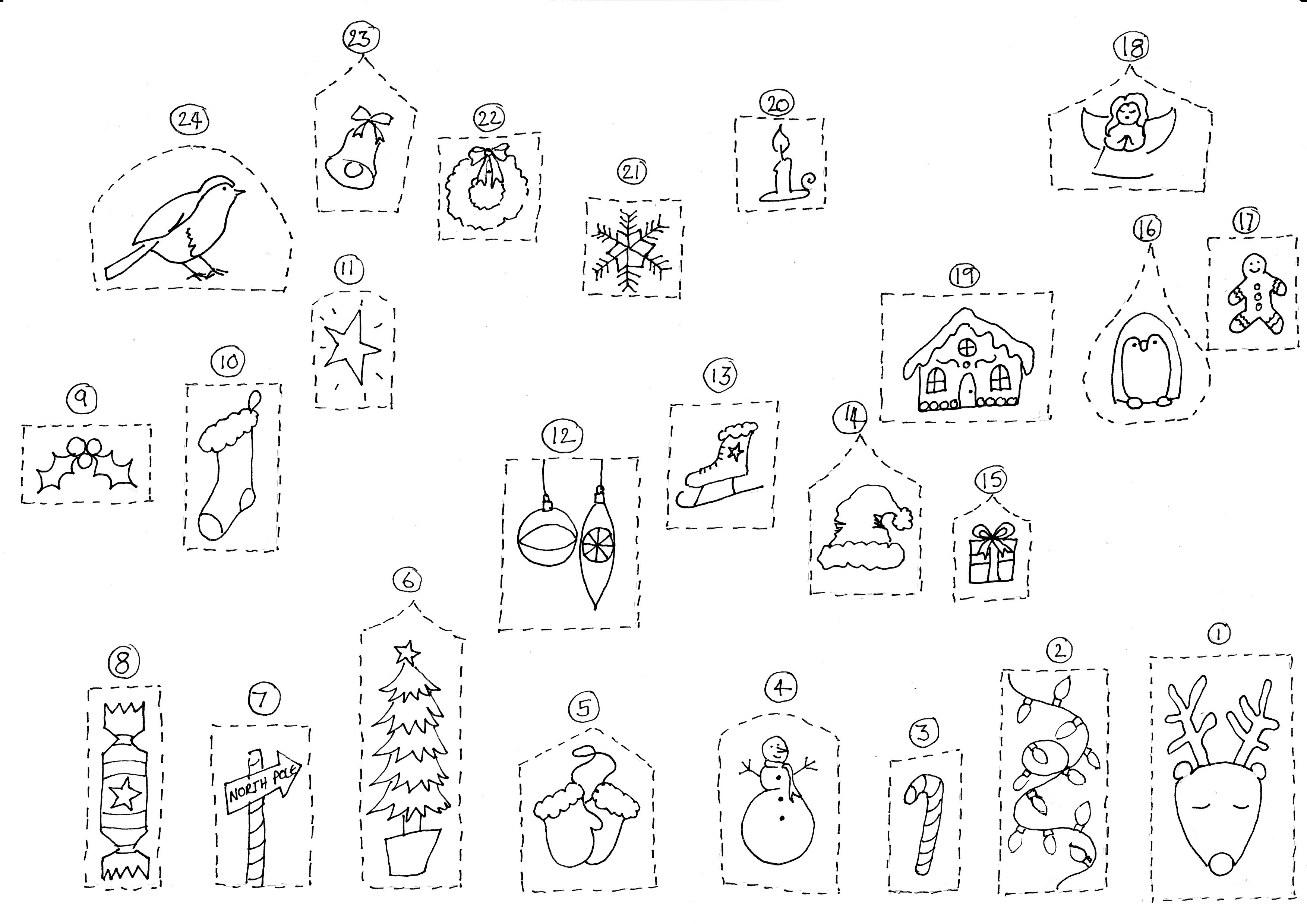 I miss the old fashioned advent calendars, that just had lovely little pictures to discover. I created an easy d.I.Y for you to print and colour.
