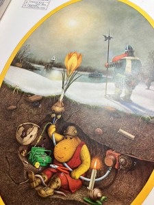 Visually, this card was inspired by Trouble for Trumpets by Peter Cross — a book I’ve written about before and one I return to often. I love its cut-away worlds, where you’re invited to look beneath the surface and notice the quiet work happening out of sight. It feels especially fitting here: a reminder that roots grow, systems mend, and life prepares itself long before anything is visible above ground.