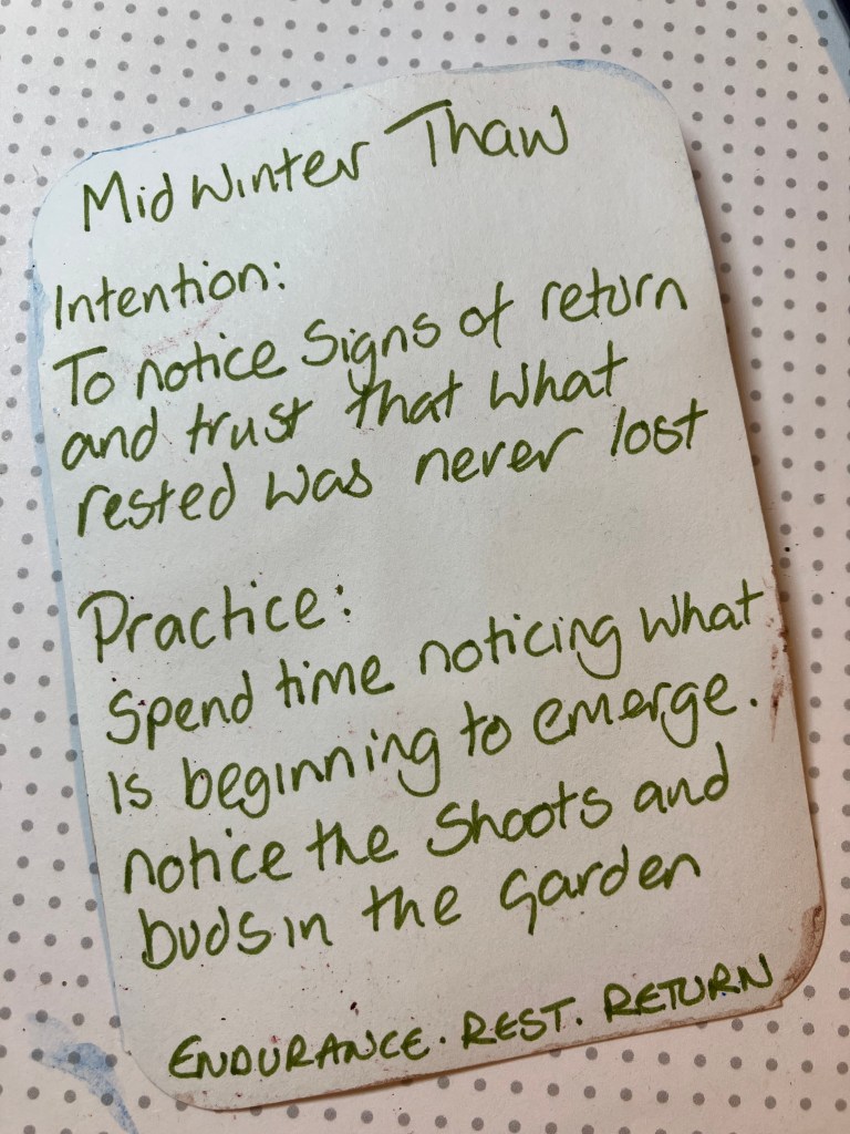 This card feels like a hinge moment between endurance and emergence. Not spring yet — but no longer only winter.