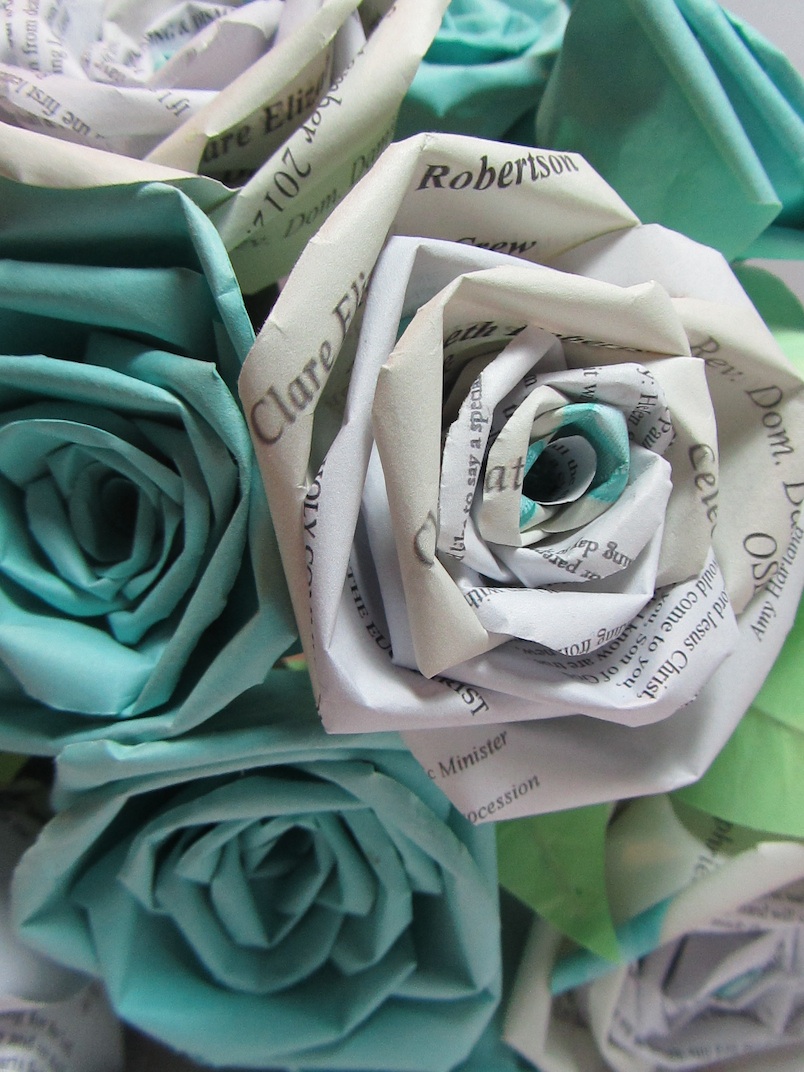 1st Anniversary flowers made from the Order of Service by Ena Green Designs